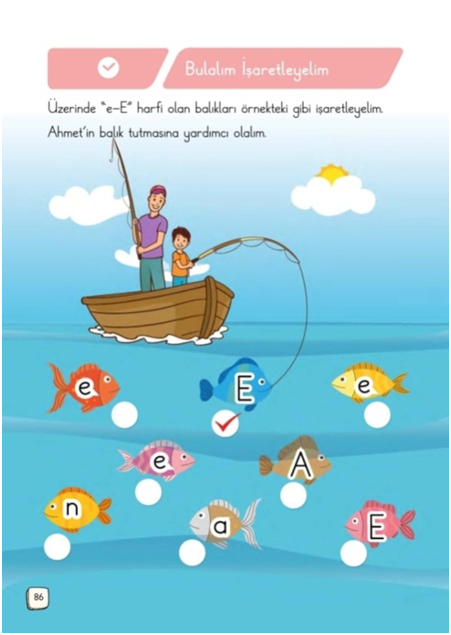 Gönderdiğiniz resmi inceledim. “Bulalım Yazalım” başlıklı bu etkinlik, önceki suyun altında balıklara yazı yazma örneklerinizle tamamen aynı pedagojik tasarım hatasına sahiptir.