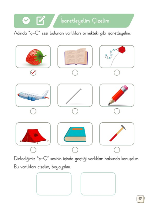 EK-1: Adında Ç sesi olan varlıkları işaretleyelim. (2.kit.s.97)